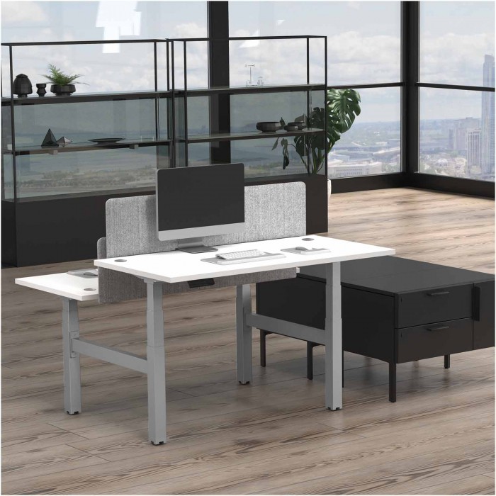 Włącz ruch do swojego dnia pracy, aby pozostać aktywnym i zdrowym. Bezproblemowo zmieniaj pozycję podczas pracy (z siedzącej na stojącą) za pomocą panelu sterującego z 3 programowalnymi ustawieniami pamięci. Zwiększ codzienną aktywność podczas pracy dzięki opcjonalnemu alertowi przypominającemu o naprzemiennej pracy (siedzenie/stanie). Szeroki zakres regulacji wysokości od 645 mm do 1305 mm przy standardowym blacie 25 mm. Pracuj pewnie i bezpiecznie dzięki wbudowanej funkcji wykrywania kolizji. System organizacji kabli zapewnia estetykę i gwarantuje wygodną pracę na każdej wysokości. Trwały, ekologiczny blat dostępny w kilku wersjach kolorystycznych i rozmiarach. Cicha praca siłowników sprawia, że zmiana pozycji pracy nie przeszkadza w pracy innym. Gwarancja: konstrukcja - 15 lat, mechanizm - 7 lat. Baza i blat są sprzedawane osobno.