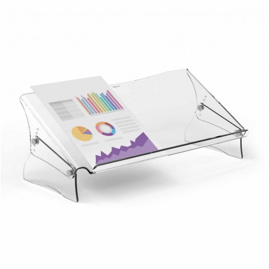 Przeznaczona do umieszczenia pomiędzy ekranem monitora lub laptopa a klawiaturą. Minimalistyczny design i najwyższej jakości przezroczysty akryl z łatwością wkomponuje się w dowolną przestrzeń biurową. Możliwość regulacji wysokości bazy - 6 pozycji (160 mm, 175 mm, 190 mm, 205 mm, 220 mm, 235 mm). Maksymalny format dokumentów - A3. Profilowana krawędź zapobiega zsuwaniu się cięższych dokumentów (o wadze do 6 kg). Kąt nachylenia w zakresie 17°- 39°. Posiada certyfikat FIRA. Gwarancja 2 lata.