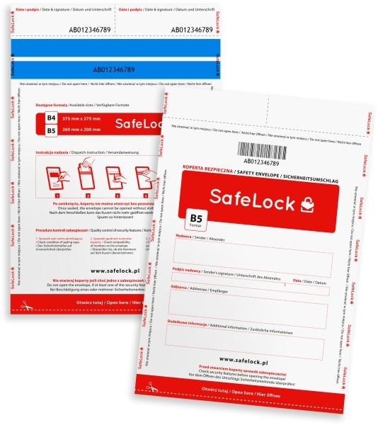 - system zabezpieczeń zastosowany w kopertach chroni ich zawartość przed ingerencją osób trzecich, każda próba otwarcia koperty pozostawi widoczne znaki ingerencji w zawartość, otwarcie koperty jest nieodwracalne