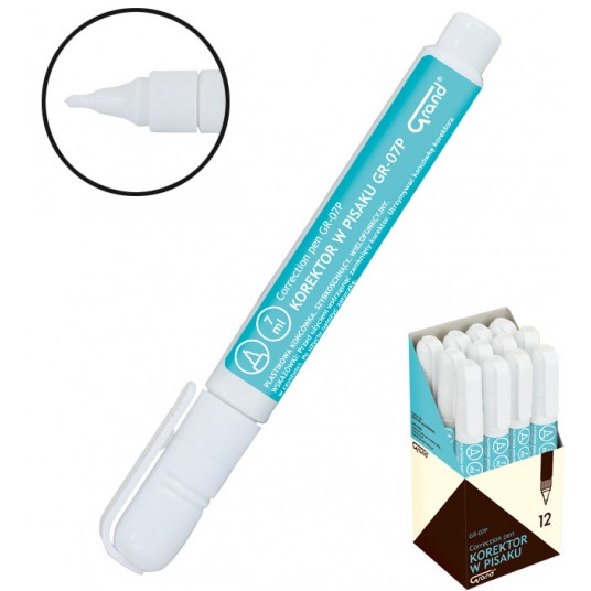 – szybkoschnący – niewidoczny na fotokopiach – każdy korektor posiada indywidualny kod kreskowy – precyzyjna plastikowa końcówka – grubość linii 2 mm – pojemność 7 ml – gwarancja 2 lata – opakowanie zawiera 12 sztuk