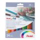 Do kolorowania, rysowania i tworzenia wodnych obrazów czy ilustracji. Na sucho lub mokro, w technice samodzielnej lub łączonej. Wystarczy narysować wybrany motyw, pokolorować go kredką akwarelową i rozmyć barwy za pomocą wodnego pędzelka Pentel FRH lub tradycyjnego pędzelka nasączonego wodą.
