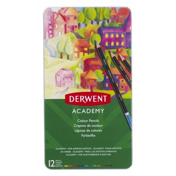Kredki Derwent Academy w pudełku metalowym 12 kolo