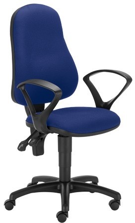 - siedzisko i oparcie pokryte pianką tapicerską oraz tkaniną posiadającą atest trudnopalności - zastosowanie mechanizmu 2-dźwigniowego pozwala na odchylanie i blokadę oparcia w dowolnie wybranej pozycji oraz regulację wysokości krzesła - regulacja wysokości oparcia - stałe podłokietniki - stabilna, nylonowa podstawa - kółka do powierzchni dywanowych w standardowej wersji, jako opcja kółka do powierzchni twardych