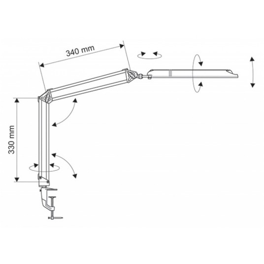 - stabilna podstawa z wewnętrznym obciążeniem, rozmiar: 20 x 14,5 cm, długość ramienia: dolnego 34 cm, górnego: 33 cm, rozmiar głowicy: około 36 x 7 cm, wysokość robocza: 45 cm
