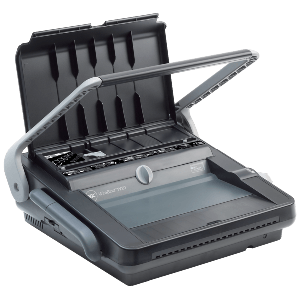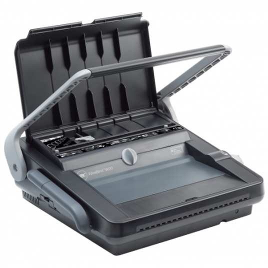 Przeznaczona do częstego użytkowania w biurze, wytrzymała i praktyczna bindownica WireBind W20 została zaprojektowana tak, aby maksymalnie ułatwić bindowanie ręczne. Posiada w standardowym wyposażeniu funkcję separacji kartek oraz funkcję ich automatycznego centrowania, dziurkuje do 20 kartek o gramaturze 80 g/m2, jednocześnie i binduje do 125 kartek przy zastosowaniu grzbietu drutowego o średnicy 14 mm, w formatach A4 i A5.