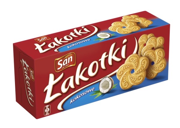 popularne ciasteczka o smaku kakaowym, kokosowym lub obsypane cukremSkładniki:mąka pszenna, cukier, olej palmowy, wiórki kokosowe 15,7%, syrop glukozowo-fruktozowy, jaja w proszku, substancje spulchniające (węglany amonu, węglany sodu, difosforany), pełne mleko w proszku, odtłuszczone mleko w proszku, sól, emulgator (stearoilomleczan sodu), aromat.