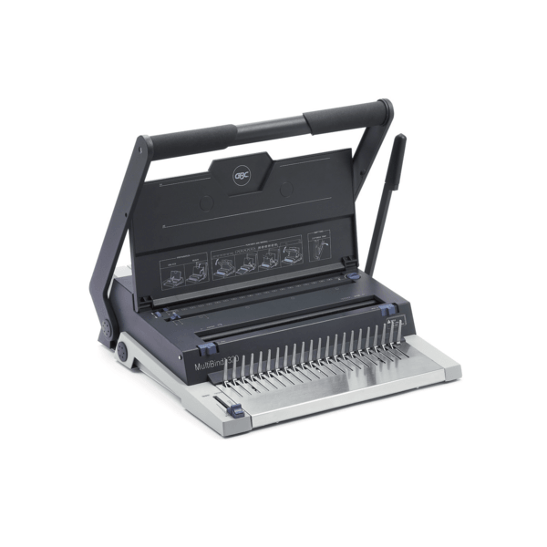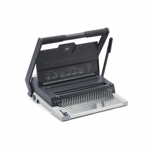 Przeznaczona do częstego użytkowania bindownica MultiBind 320 to wszechstronne, wielofunkcyjne urządzenie umożliwiające oprawę dokumentów w grzbiety plastikowe i druciane. Posiada opcję dziurkowania 4 otworów do tradycyjnej archiwizacji. Szeroka dźwignia zapewnia płynną i bezwysiłkową pracę. Dziurkuje do 20 kartek o gramaturze 80 g/m2 jednocześnie i binduje do 125 kartek przy zastosowaniu grzbietów drutowych z 21 zwojami lub do 450 kartek przy zastosowaniu grzbietów plastikowych o średnicy 51 mm.