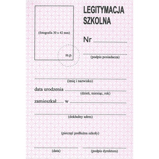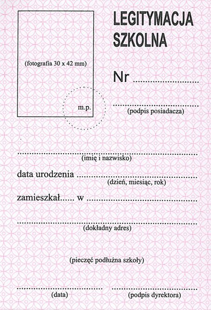 MEN –I/1 Legitymacja szkolna dla uczniów szkół pod