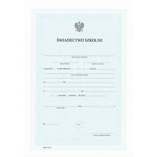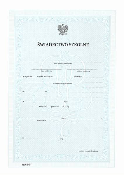 MEN I/3/1 Świadectwo promocyjne dla uczniów klas I