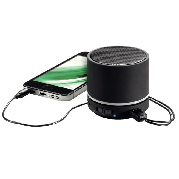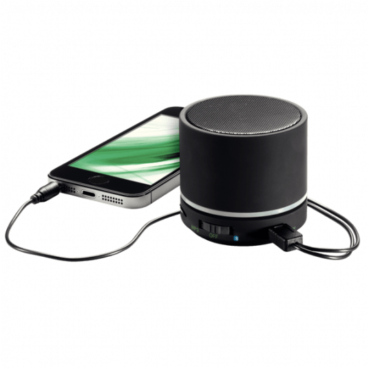 - słuchaj doskonałej jakości dźwięku z eleganckim i stylowym głośnikiem Complete - głośniki można połączyć z każdym urządzeniem mobilnym za pośrednictwem bluetooth lub standardowej wtyczki od słuchawek - wbudowany system głośnomówiący - wbudowany odtwarzacz mp3 przy użyciu karty micro SD - regulacja głośności i kolejności odtwarzania utworów - ładowanie przez port USB - podłącz dowolne źródło dźwięku bezpośrednio do głośnika za pośrednictwem 3,5-milimetrowego portu AUX IN - akumulator litowo-jonowy umożliwia pracę do 6 godz. - wskaźnik LED poziomu naładowania baterii, MP3 i funkcji Bluetooth - wymiary (szer. x wys. x gł.): 60 x 54 x 60 mm - kolor: czarny