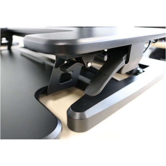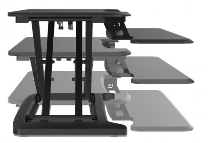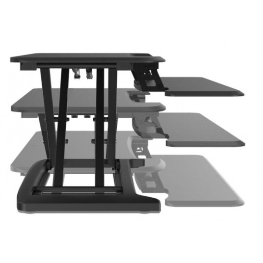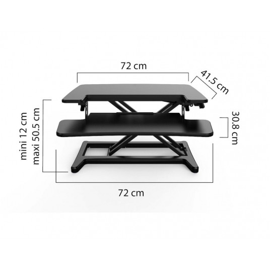 • Regulowane biurko o nowoczesnym designie • Możliwość regulacji wysokości blatu od 12 do 50,5 cm • Możliwość dostosowania wysokości do użytkowania w pozycji siedzącej i stojącej • 2 blaty umieszczone na różnych wysokościach – górny np. Na monitor, a dolny na klawiaturę • Wykonane ze stali z powłoką epoxydową oraz malowanego drewna • Waga: 14,5 kg • Gwarancja 2 lata • Jednostka sprzedaży: 1 szt.