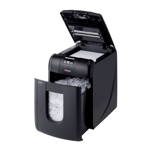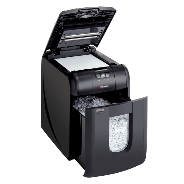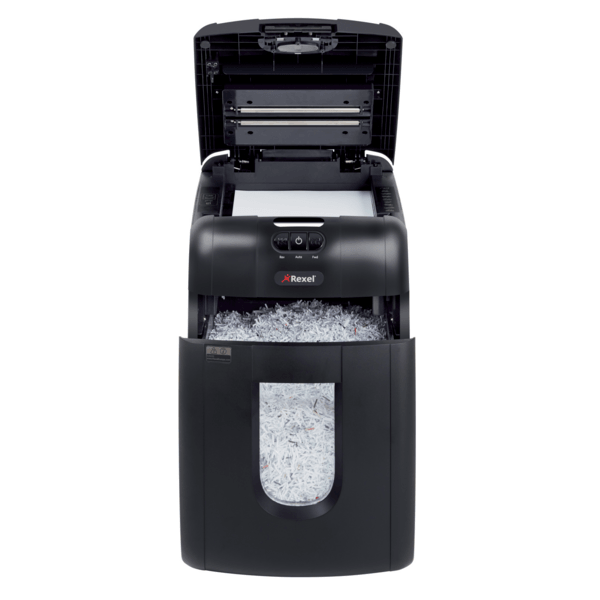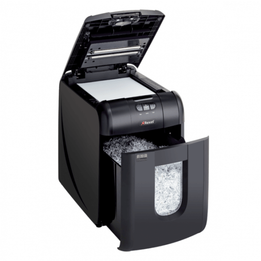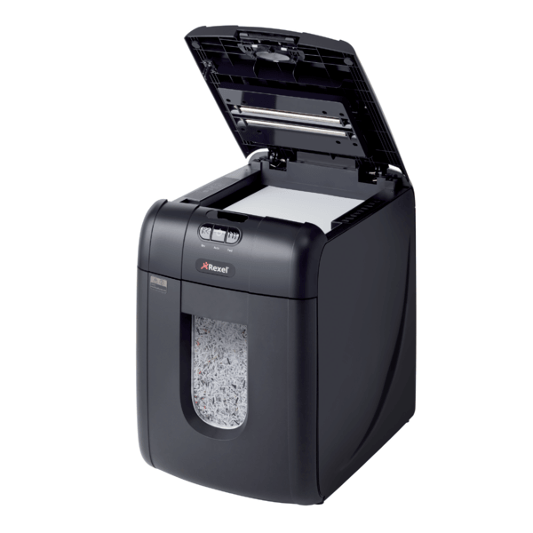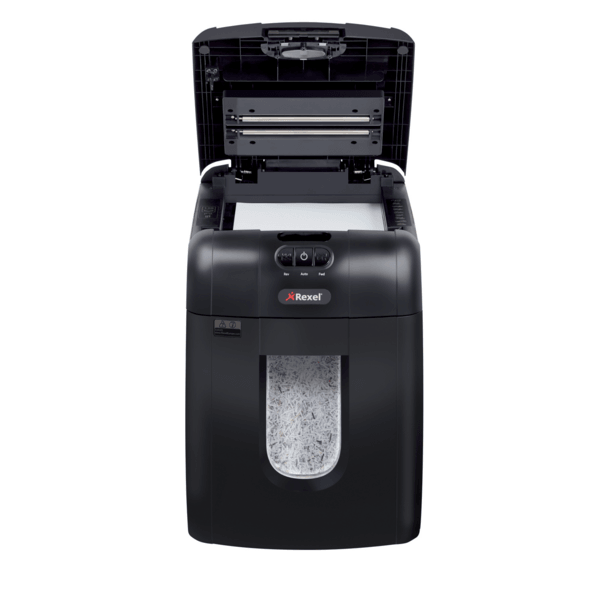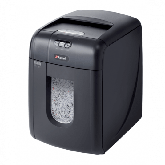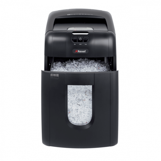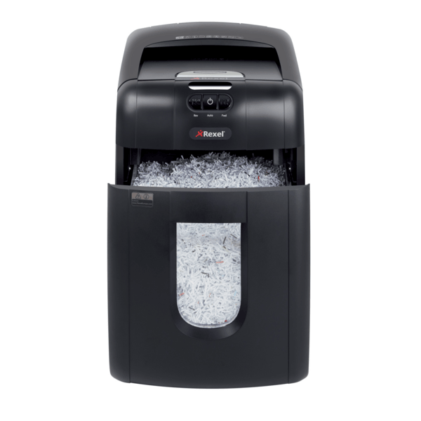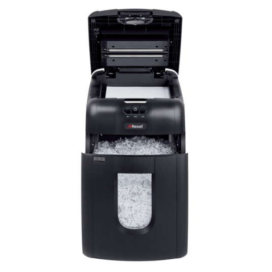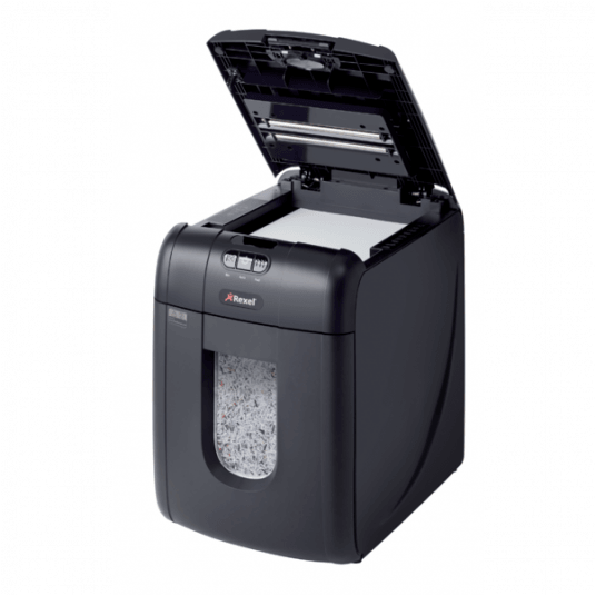 Oszczędź do 98% czasu poświęcanego na niszczenie dokumentów, używając niszczarek z automatycznym podajnikiem. Niszczarka Rexel Auto+ 130M niszczy automatycznie do 130 kartek (80 g/m2) lub do 140 kartek (70 g/m2), tnąc je na mikrościnki 2 x 15 mm (P-5). Nie musisz już stać przy urządzeniu, aby wkładać kartki, usuwać spinacze i zszywki. Dzięki automatycznemu podajnikowi i 26-litrowemu pojemnikowi na ścinki wystarczy załadować do 130 kartek A4, a niszczarka sama wykona pracę.