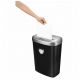 Niewielkich rozmiarów niszczarka osobista przeznaczona do pracy o niskim natężeniu - idealna dla 1 os. do domu lub małego biura. Niszczy jednorazowo do 10 kartek A4 na ścinki 4 x 35 mm (P–4/T–1/O–1). Umożliwia niszczenie dokumentów ze zszywkami i małymi spinaczami biurowymi, karty płatnicze oraz płyty CD/DVD. Wyposażona w osobną szczelinę do niszczenia kart płatniczych i płyt CD/DVD. Prosta (intuicyjna) w obsłudze z czytelnym panelem sterowania.