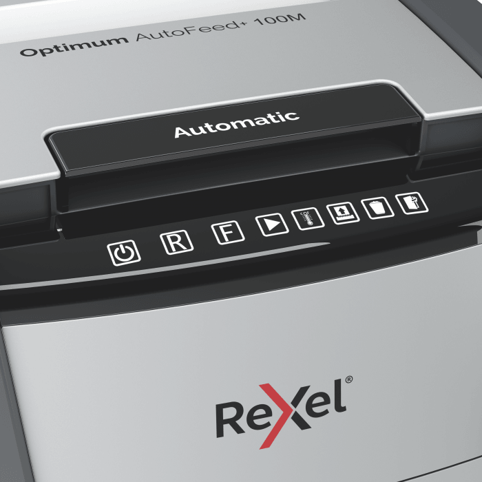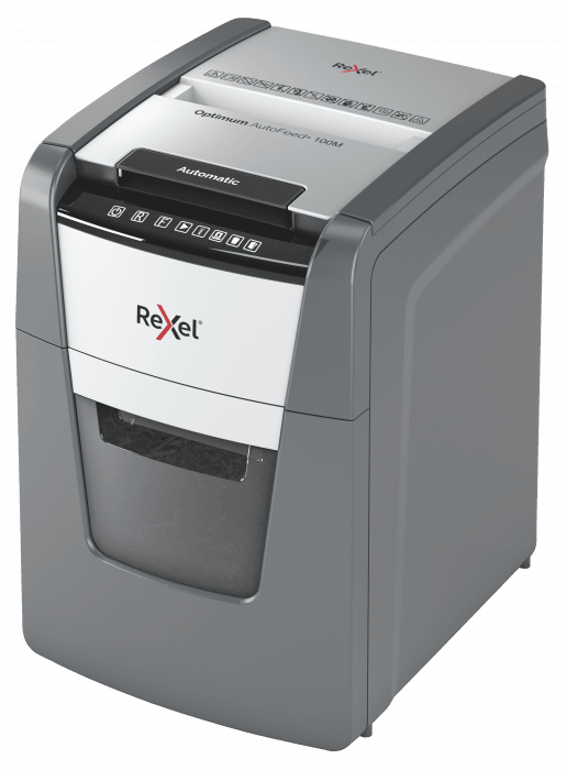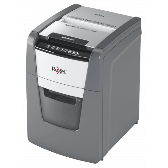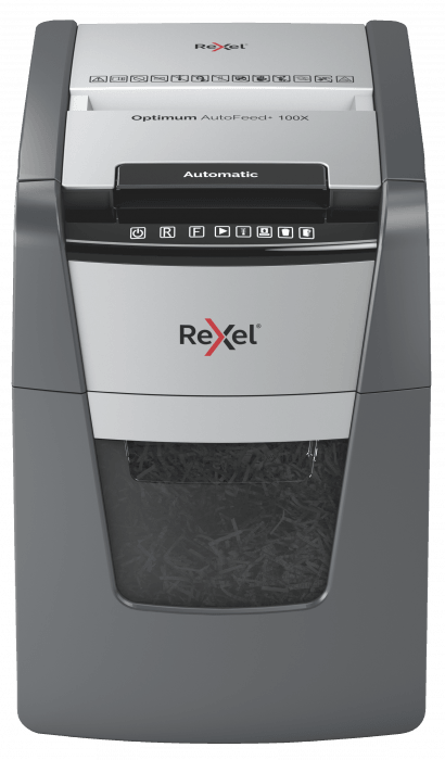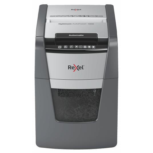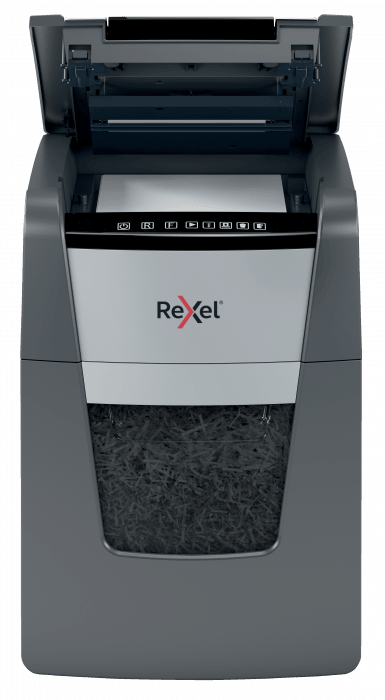 Oszczędność 98% czasu. Podajnik automatyczny AutoFeed zapewnia łatwą i oszczędną czasowo obsługę niszczarki - zaoszczędzisz 98% czasu w porównaniu do niszczczarek z podajnikiem ręcznym. Technologia zapobiega zacięciom. Niszczy także karty kredytowe, zszywki i spinacze. Dotykowy panel sterowania. Czujnik na podczerwień informuje o wypełnieniu pojemnika na ścinki. Ultraniski poziom hałasu: 55 dBA. - konfetti (4x28mm) - czas nieprzerwanej pracy 20 minut - kosz na ścinki 34 l - gwarancja 2 lata