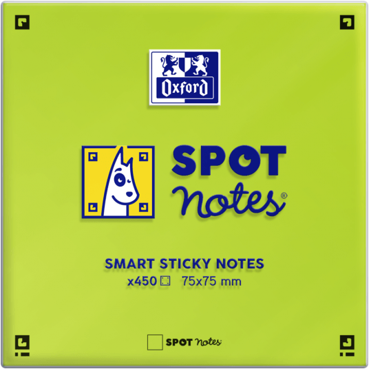 • Wielokolorowa kostka samoprzylepnych karteczek (zielony, złoty, fioletowy, pomarańczowy, biały) • Specjalne tagi w narożnikach umożliwiają skanowanie notatek przy użyciu aplikacji Scribzee® • 450 kartek w każdej kostce • Wymiary: 75 x 75 mm
