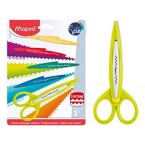 - plastikowe nożyczki kreatywne z 5 rodzajami wymiennych ostrzy do wycinania różnych wzorów - doskonała zabawka rozwijająca zdolności manualne dzieci - długość: 13 cm