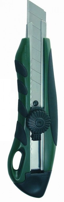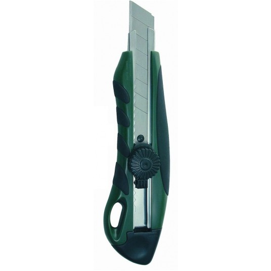 - ergonomiczna obudowa - łamane, wymienne ostrze ze stali nierdzewnej - przycisk blokujący pozycję ostrza - elementy gumowe zapobiegają ślizganiu się noża w dłoni - długość noża: 17 cm