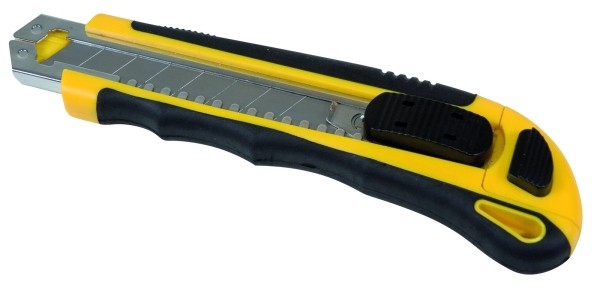 - wysuwane 7-częściowe ostrze z możliwością odłamywania części - obudowa wykonana z wytrzymałego plastiku - wyposażony w gumową rękojeść zapewniającą doskonałe trzymanie - stalowa prowadnica ostrza gwarantuje stabilność i bezpieczeństwo pracy - ostrze wykonane ze stali hartowanej - posiada magazynek mieszczący dwa dodatkowe ostrza - w komplecie znajdują się trzy ostrza - dług. ostrza: 100 mm, szer. ostrza: 18 mm - kolor: żółto-czarny