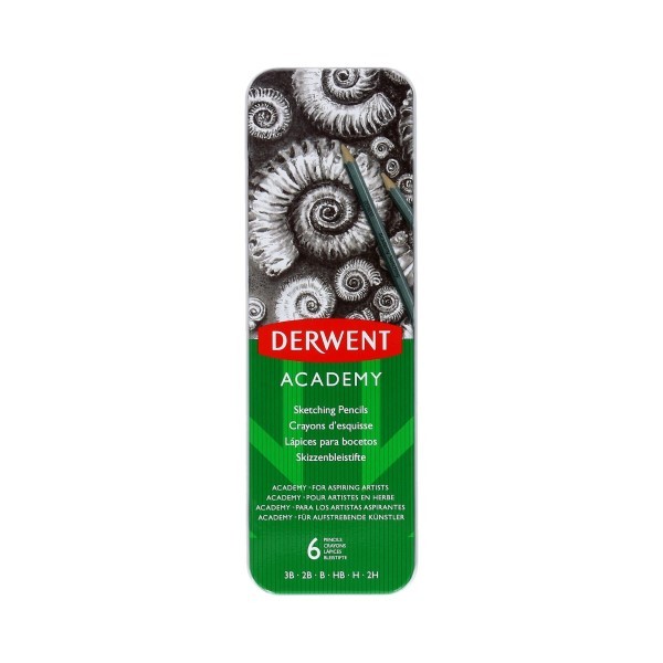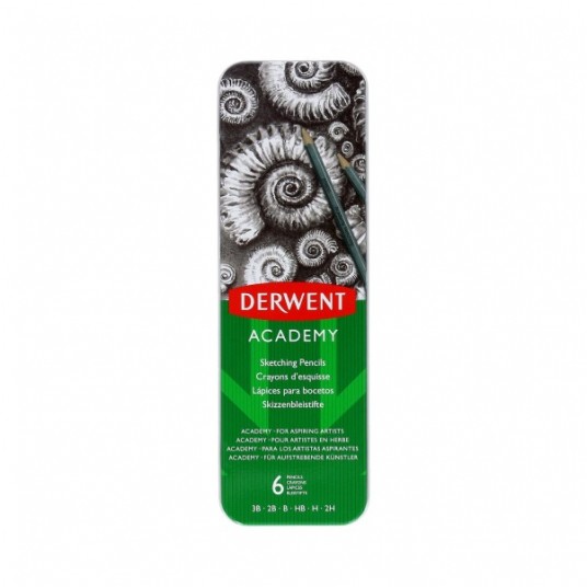 Ołówki do rysowania Derwent Academy mają wąską, szarą, sześciokątną oprawę (6,9 mm), zakończoną długą, błyszczącą, czarną końcówką. Średnica grafitowego rdzenia zmienia się w zależności od jego twardości: od 2,2 mm w przypadku ołówków twardszych (2B-5H) do 2,8 mm w przypadku ołówków bardziej miękkich (3B-6B). Wykonane są z wysokiej jakości grafitu i oprawione w naturalne drewno - są łatwe do zatemperowania i odporne na pęknięcia. Sześciokątna oprawa ułatwia trzymanie ołówka i kontrolę podczas rysowania, szczególnie w przypadku prac wymagających precyzji. Aby ułatwić identyfikację ołówka, stopień twardości nadrukowany jest na oprawie.