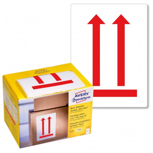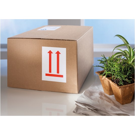 Ostrzegawcze etykiety wysyłkowe 'Tutaj góra' w dys