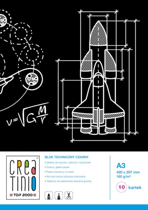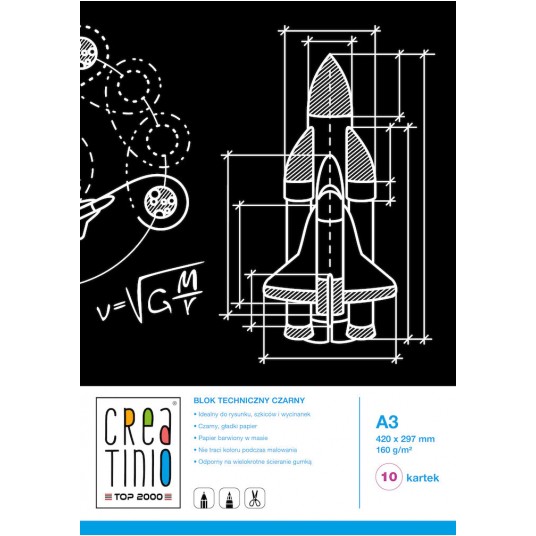 Blok techniczny Top 2000 Creatinio czarny A3 10 ka