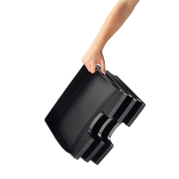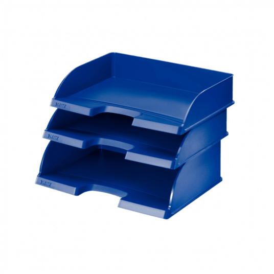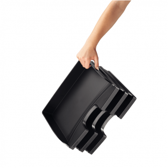 Bardzo mocna półka o dużej pojemności, do wkładania dokumentów po długim boku. Wzornictwo i kolorystyka spójna z linią produktów na biurko Leitz Plus. Może być ustawiana jedna na drugiej z półkami Plus ładowanymi po długim boku. Format A4 Maxi.