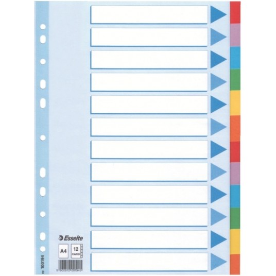 Przekładki kartonowe Esselte A4 kolorowe 12 ark.
