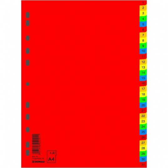 Przekładki plastikowe Donau PP A4 kolorowe numeryc