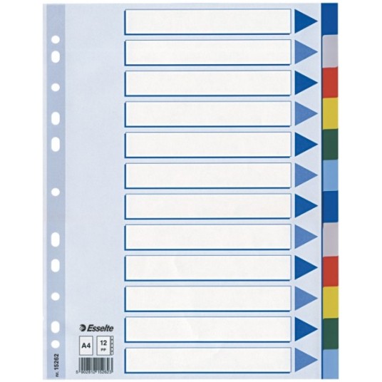 - do segregowania dokumentów o formacie A4 - przekładki i indeksy w 5 kolorach - multiperforowane - pasują do każdego segregatora - z kartą informacyjno - opisową, której pasek z perforacją jest wzmocniony folią - wymiary: A4 - 225 x 297 mm