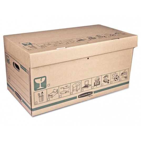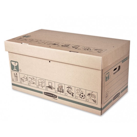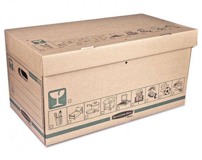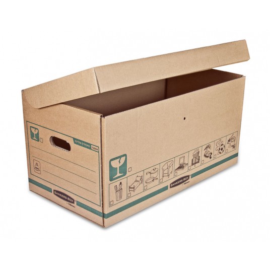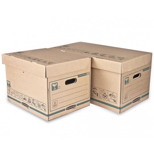 Pudło transportowo-archiwizacyjne EXTRA STRONG to niezwykle wytrzymałe, bezpieczne i wygodne pudło do użytku w domu lub biurze. Udźwig do 40 kg (przy równomiernym rozłożeniu zawartości). Idealne do przechowywania w domu (garażu, spiżarni, piwnicy, etc.) lub biurze. Wytrzymałe i bezpieczne: wykonane z bardzo grubej tektury falistej z potrójnym systemem ścian bocznych. Otwory w ścianach bocznych ułatwiają przenoszenie, a uchylne wieko ułatwia zamknięcie pudła. Otwory w wieku i po bokach pudła umożliwiają plombowanie zawartości (plomby nie są sprzedawane wraz z pudłem). Z czytelnym oznakowaniem: duże etykiety do opisu zawartości na bokach oraz ikony na bokach pudła i wieku. Opakowanie zawiera 20 sztuk pudeł.