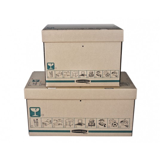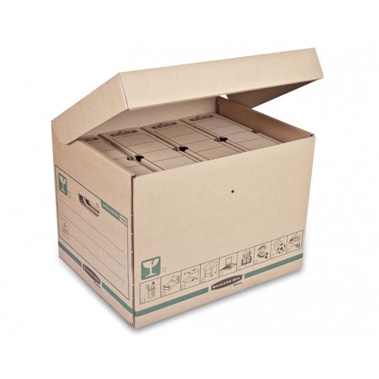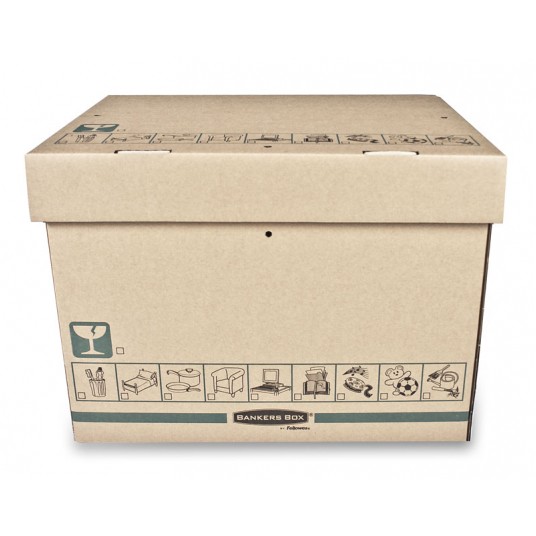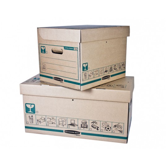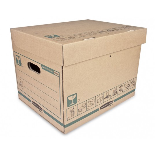 Pudło transportowo-archiwizacyjne EXTRA STRONG to niezwykle wytrzymałe, bezpieczne i wygodne pudło do użytku w domu lub biurze. Udźwig do 35 kg (przy równomiernym rozłożeniu zawartości). Idealne do przechowywania w domu (garażu, spiżarni, piwnicy, etc.) lub biurze. Wytrzymałe i bezpieczne: wykonane z bardzo grubej tektury falistej z potrójnym systemem ścian bocznych. Otwory w ścianach bocznych ułatwiają przenoszenie, a uchylne wieko ułatwia zamknięcie pudła. Otwory w wieku i po bokach pudła umożliwiają plombowanie zawartości (plomby nie są sprzedawane wraz z pudłem). Z czytelnym oznakowaniem: duże etykiety do opisu zawartości na bokach oraz ikony na bokach pudła i wieku. Opakowanie zawiera 20 sztuk pudeł.